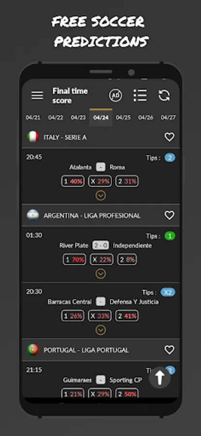 In addition, we offer daily betting tips for the different types of options available in the app: