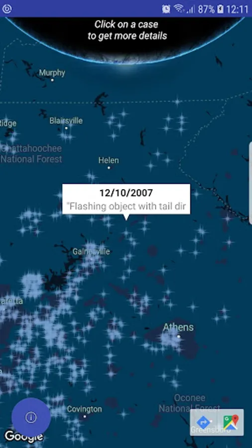 Did you ever asked in which places there is the highest number of UFO sighting ? With "UFO: The United States map" you will be able to locate the last UFO sighting in the United States with detailed informations based on the NUFORC (National UFO Reporting Center) public database. It includes more than 80000+ cases reported in the USA.
