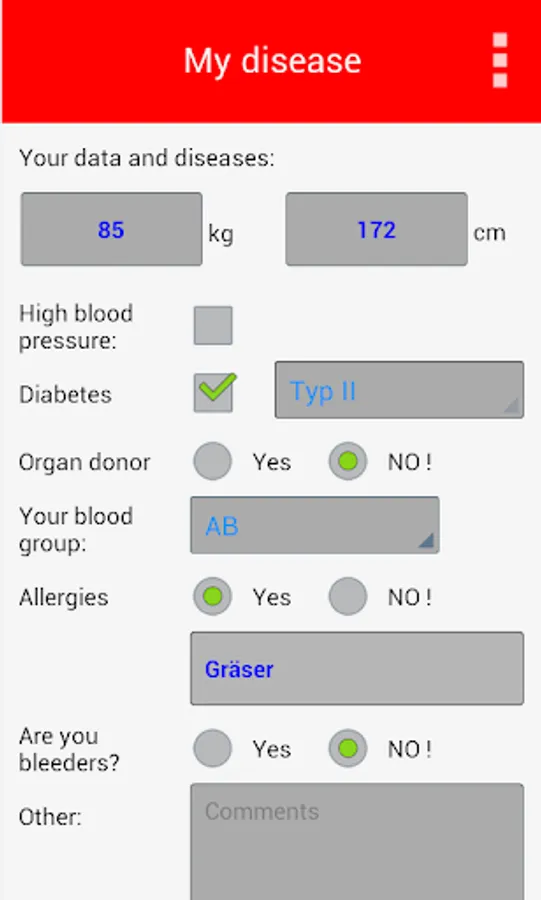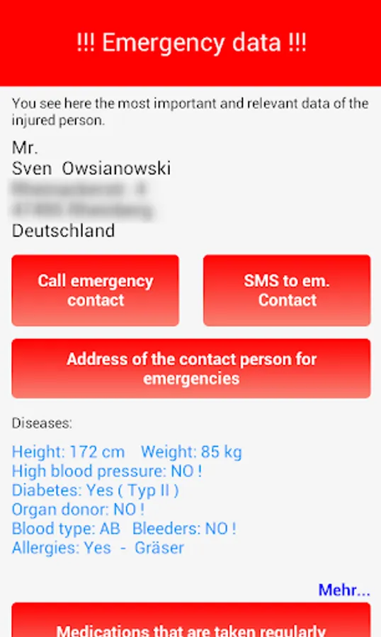 This app gives you the possibility your data and all relevant health data as well as current medications recorded. They also capture a person to be informed in an emergency with this app.
