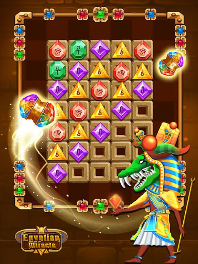 Playing “Egyptian miracle match legend” you'll have to combine pieces of the same color diamond and complete missions within the given time. Success will be rewarded with bonus scores and gold which you may spend to purchase various bonuses and upgrades. Upon the discovery of pyramid magic and gathering all the precious jewels the player will rebuild the Pharaoh temple