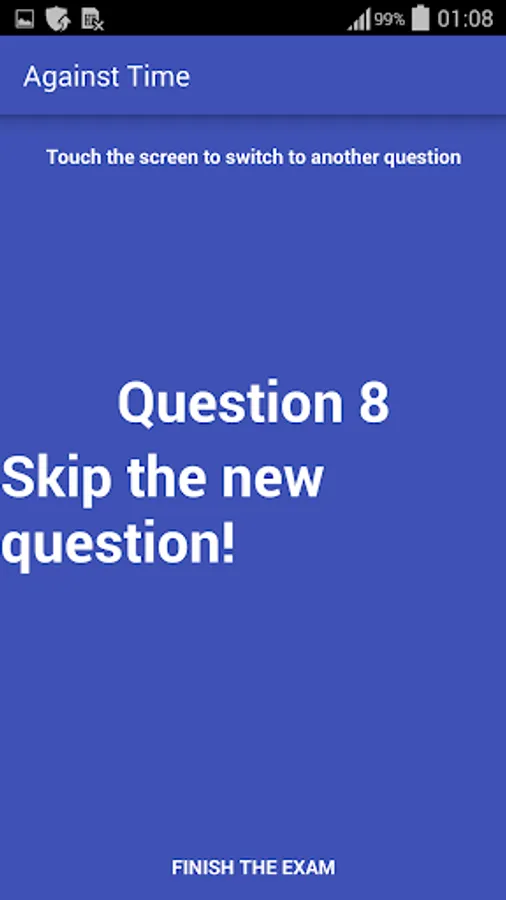 In each question, the user is warned with a warning sound when half of the time per question is reached (eg 60 seconds per question, 30 seconds warning sound), and he understands that half of the time is exhausted. When the time per question is over, he asks you to leave a question with an audible warning and pass a new question. Thus, the question is not stolen from the time of the exam.