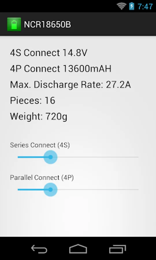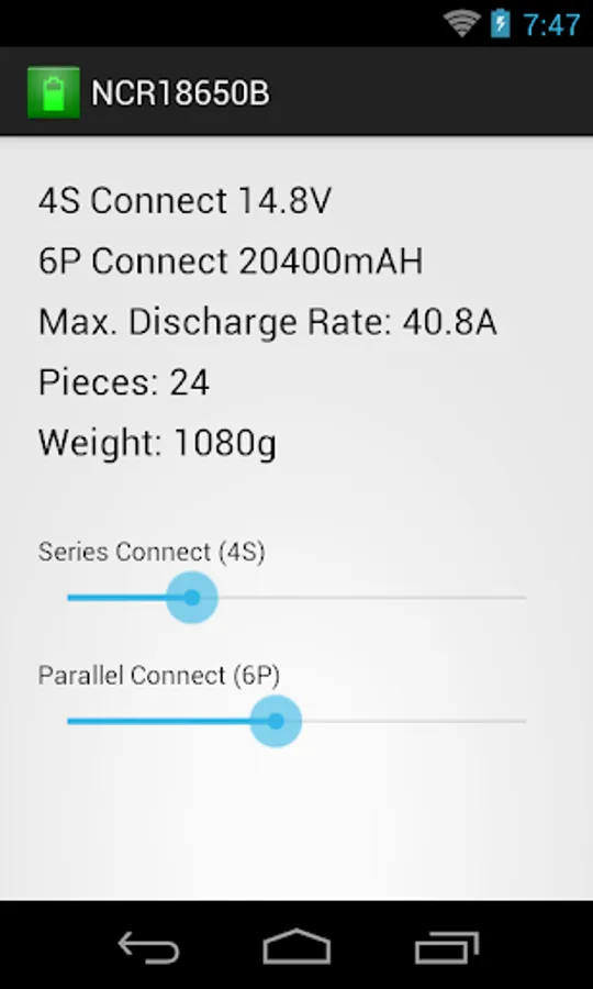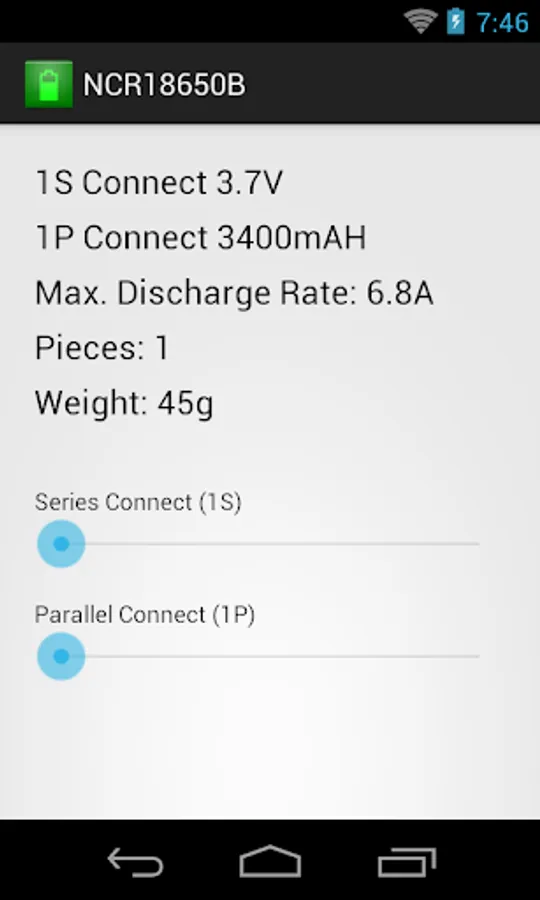 Panasonic NCR18650B Calculator Screenshots