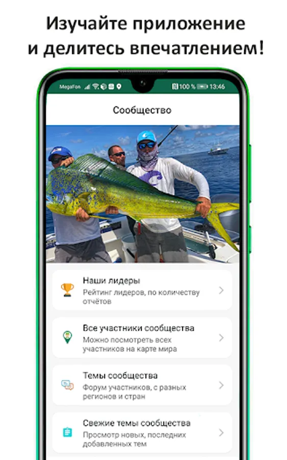In this application, there are fishermen's guides, a community where you can show off your trophy, as well as chat with anglers like you. All the marks on the map are set by the fishermen themselves and share their experience.