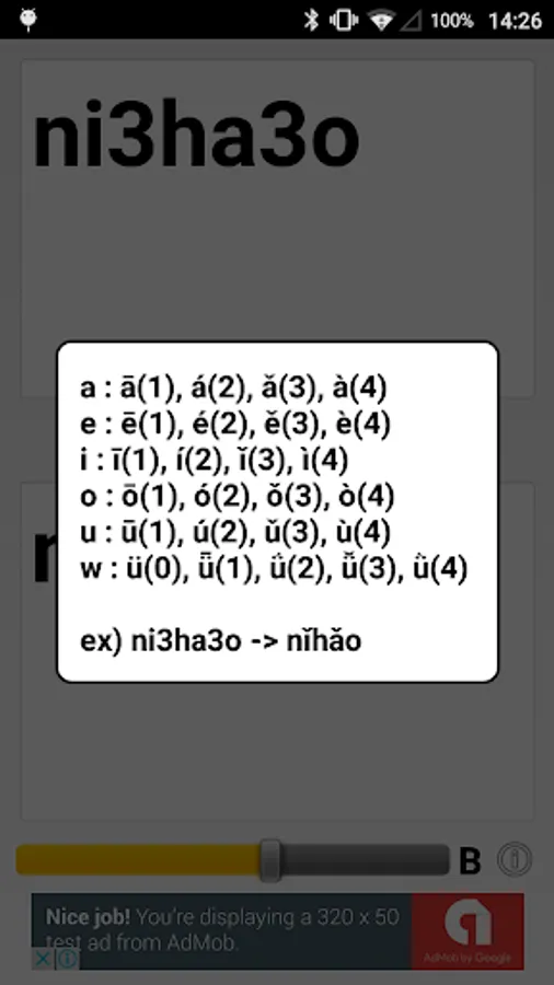 - ex) ni3ha3o -> nǐhǎo