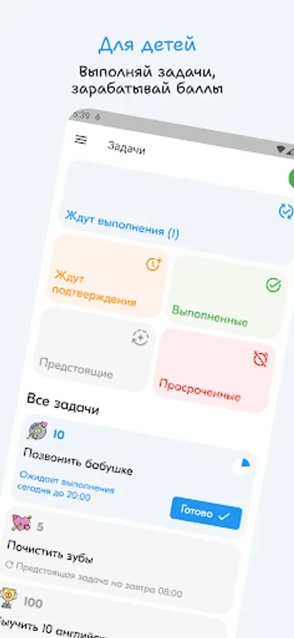 Unique family task manager for parents and kids.