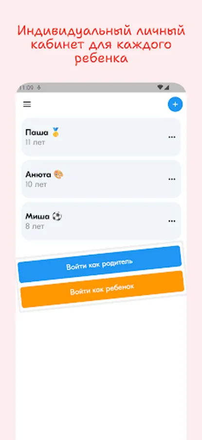 - Individual personal account, separate for parents and each child