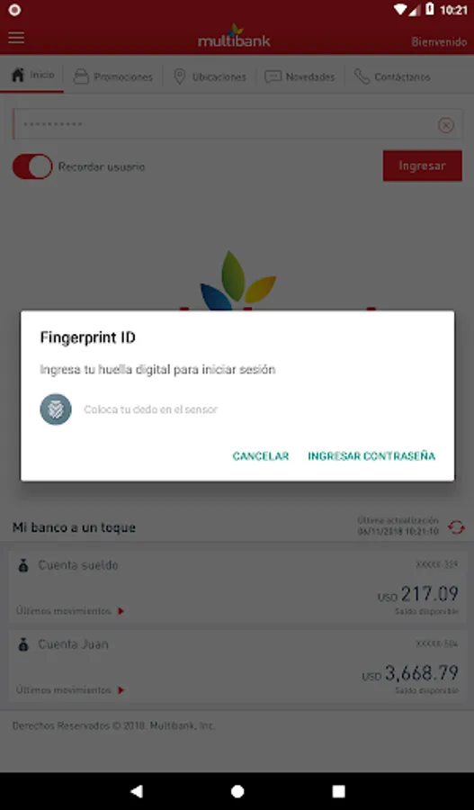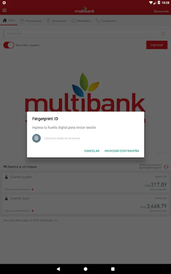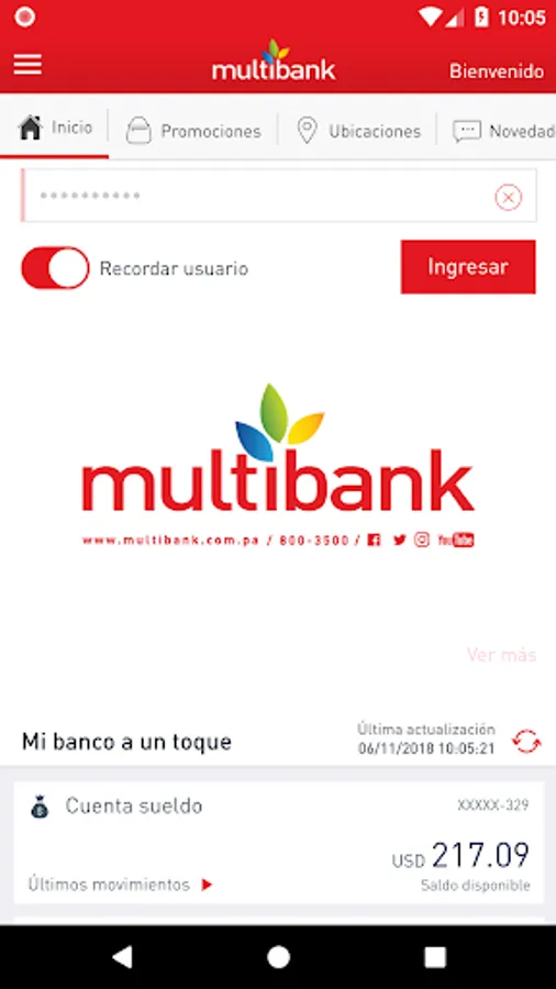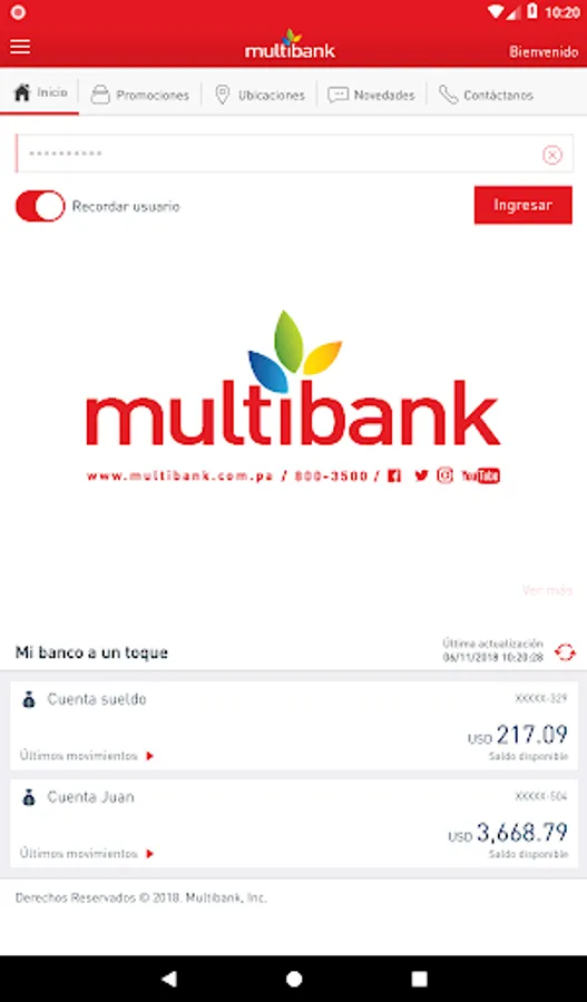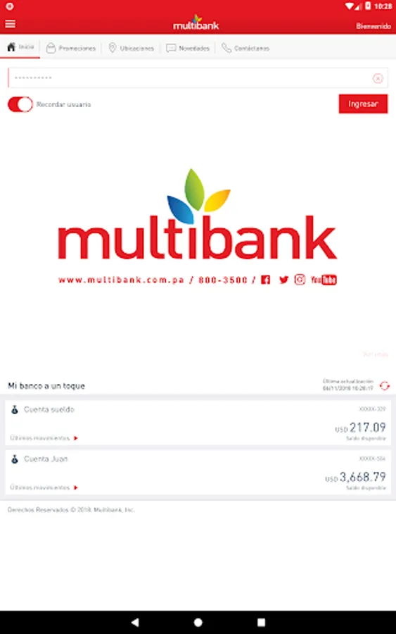 If you have any problem or suggestion to improve the application, please write to us at contactenos@multibank.com.pa