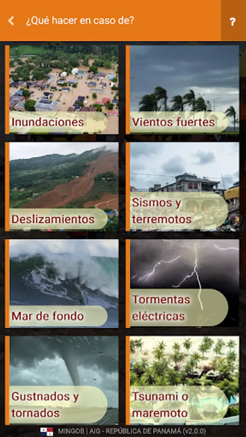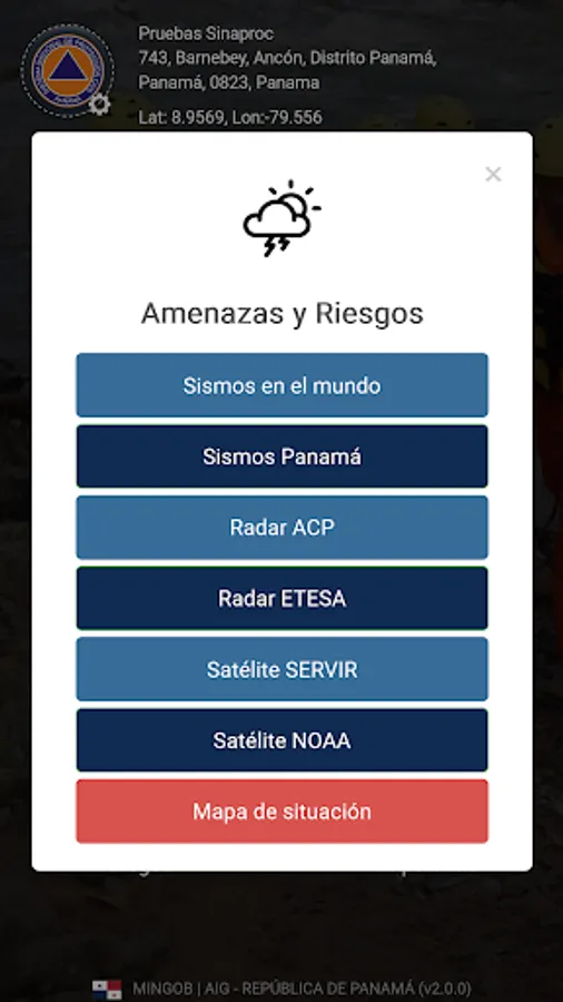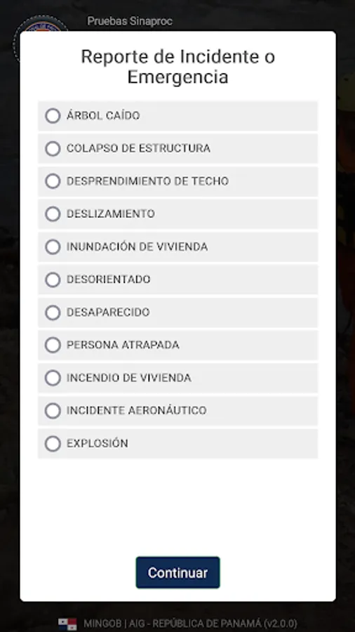 The citizen will be able to report in real time and in a geopositioned way the different news, incidents and emergencies caused by natural, technological or anthropogenic disasters that occur at the national level.