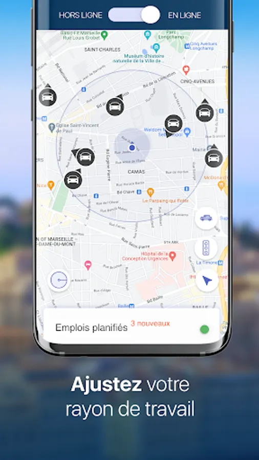 Our driver app brings you rides in the area you define and is designed to meet your needs every moment of your journeys.