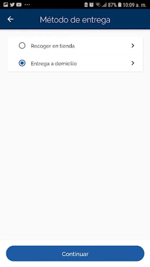 The consumer may choose to pick up at the store or receive their purchase at home.