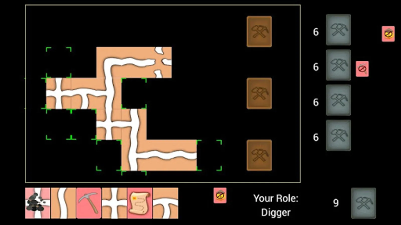 The miners have to work their ways to dig the tunnels in order to get the treasure by connecting the path to the goal card, while the saboteurs on the opposite have to obstruct miners treasure goal by blocking them.