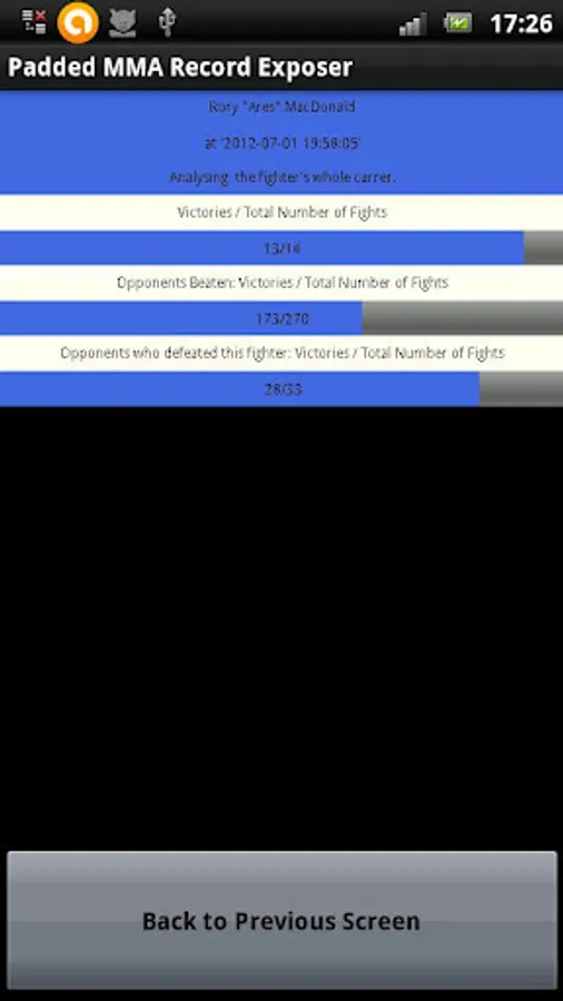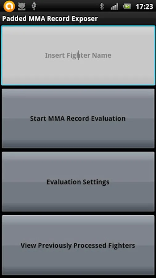 Just insert the name of an MMA fighter and the app will search the internet to find his/her record.