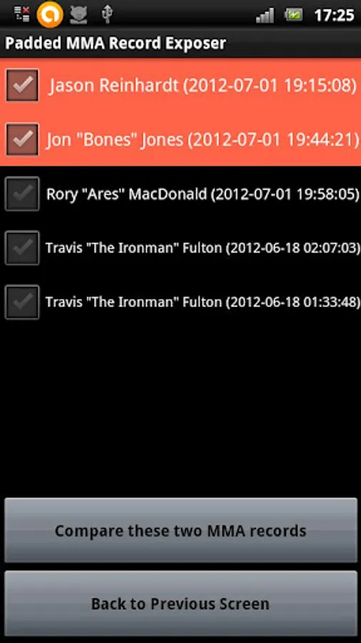 The app can also compare two records side by side, giving the user an easy way to see how the numbers tell two fighters match against each other.