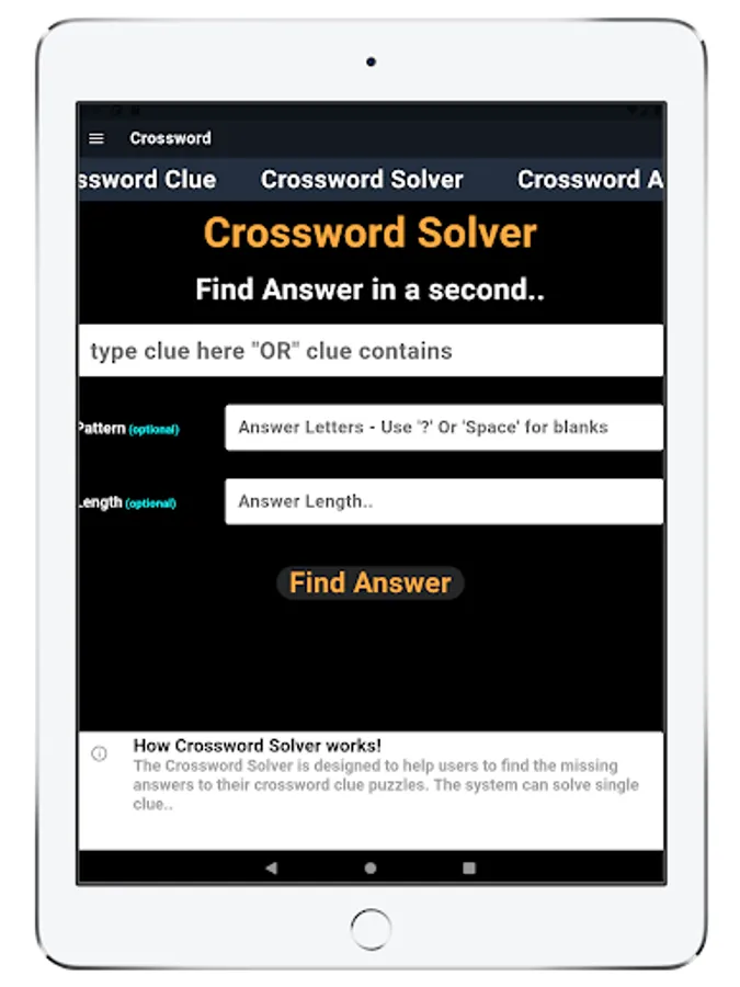 The Crossword Solver is designed to help users to find the missing answers to their crossword clue puzzles.