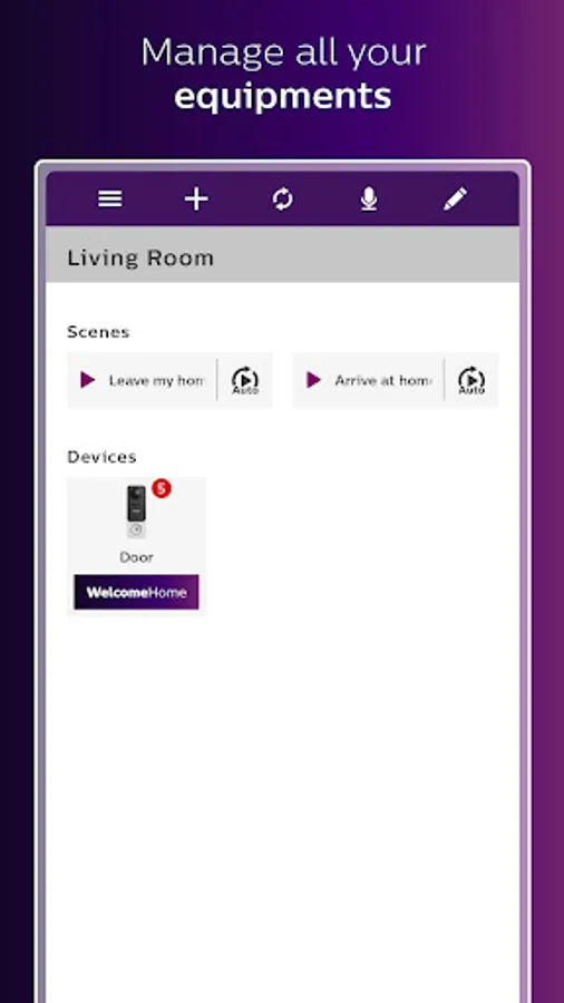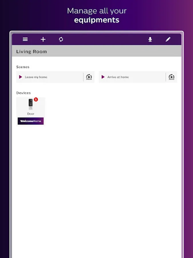The Philips Welcome App makes it easy to interact with all your home automation solutions. Create scenarios and interact with your Philips Hue lighting solutions, your WelcomeEye security solutions, your Philips WelcomeBell doorbells and your Philips TVs.