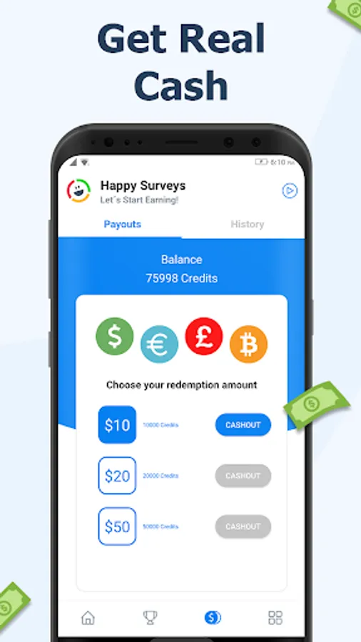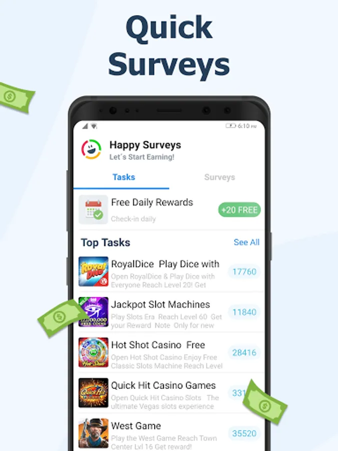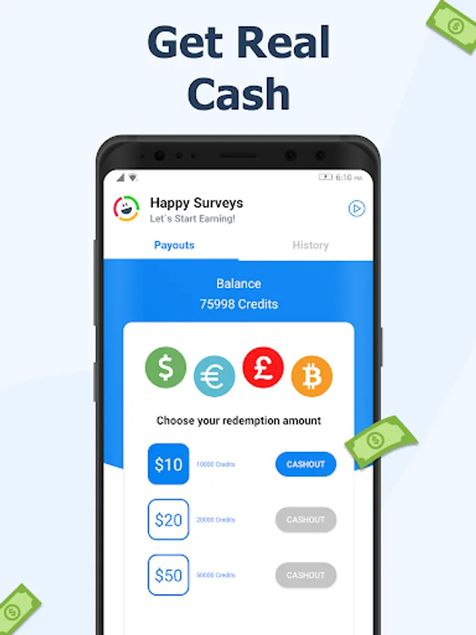 Your mobile mini-job is not only easy but also fun, make money with surveys now. Real cash is waiting for you! Be smart and earn money with a survey! Happy Surveys is leading the way for survey apps that pay cash.