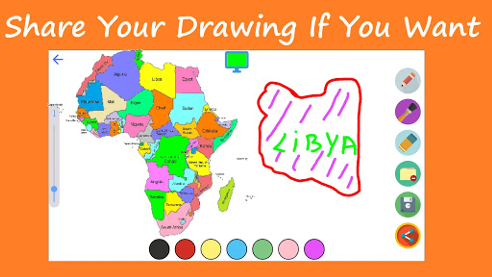 -You can make simple drawings you want with the Draw Map and Paint application. You can easily make these drawings by seeing dozens of continents and countries on the background. If you wish, you can also save or share these drawings.