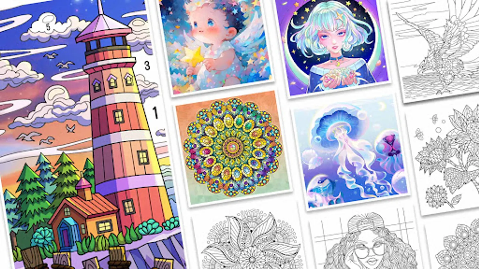 Coloring by Number has models of characters, fruits, buildings, animals, etc. 🐾Use your creativity, 😍 wave your magic paintbrush and fill in various colors. Are you ready for this adult games? 🎈 Come to the fantasy world of coloring-book together! 🖼