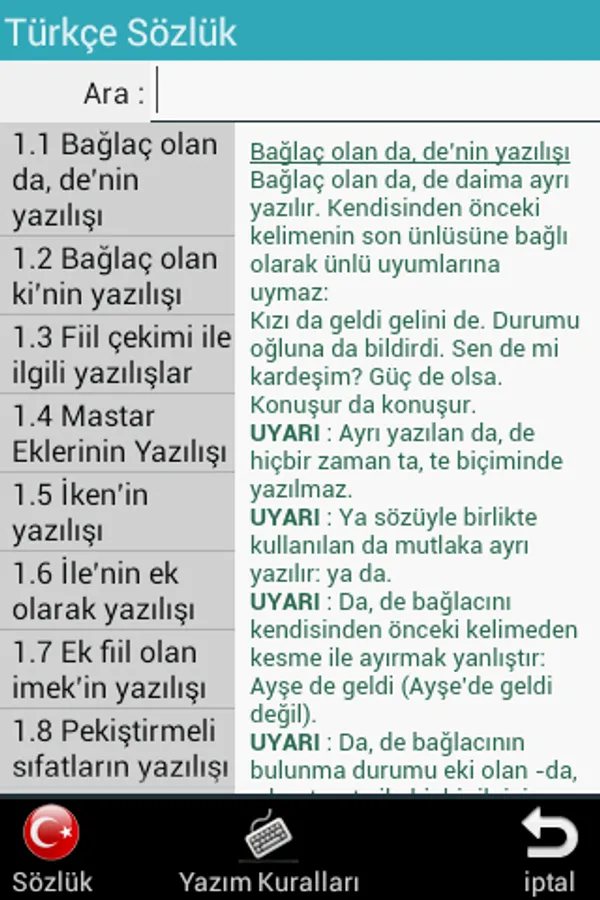 Ayrıca Türkçe yazım kuralları ile ilgili açıklamaları ayrı bir bölümde bulabilirsiniz.
