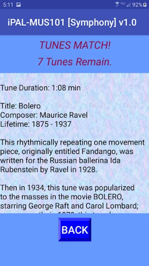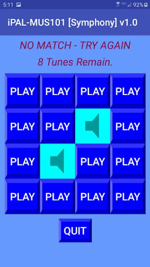 Enjoy memorable classical symphony music by the master composers, while exercising your memory skills. While playing the game, learn historical facts about the great music and its composers. This game is similar to the classic Memory game, except here, instead of pictures, you need to match tunes. Select a button, remember the tune, select another button and see if the tunes match; if they do not match, remember which tunes are under which button and select another button. When all the buttons are matched and removed, YOU WIN!!