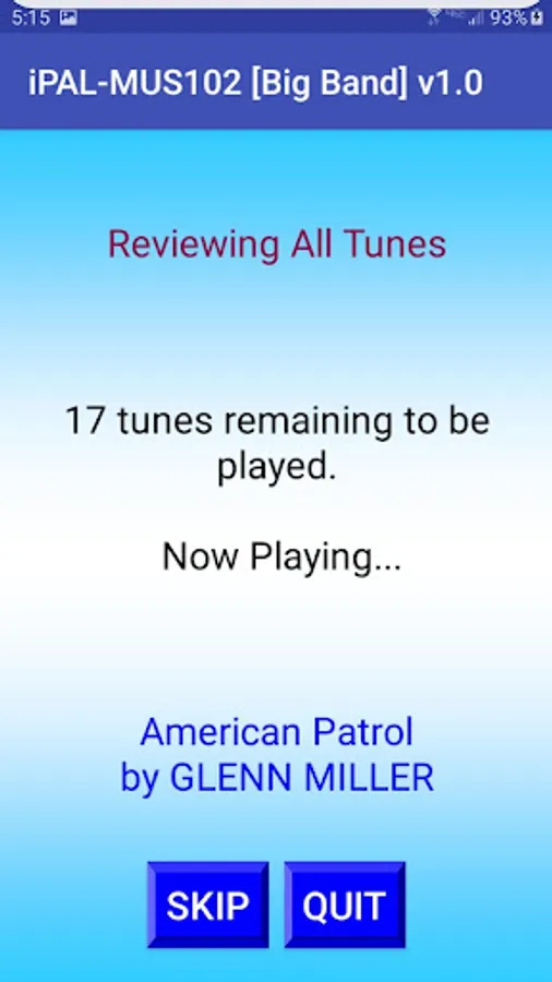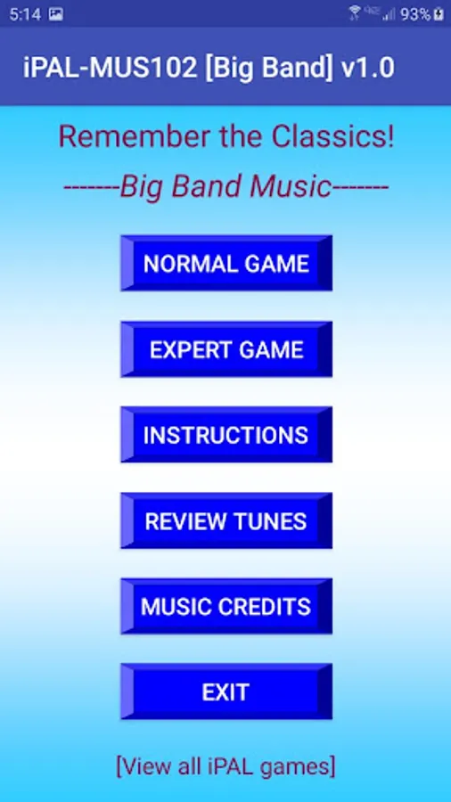 If you just want to hear the wonderful classic Big Band tunes, each about 1-minute in length, without playing any game, then you can select the REVIEW button and just listen.