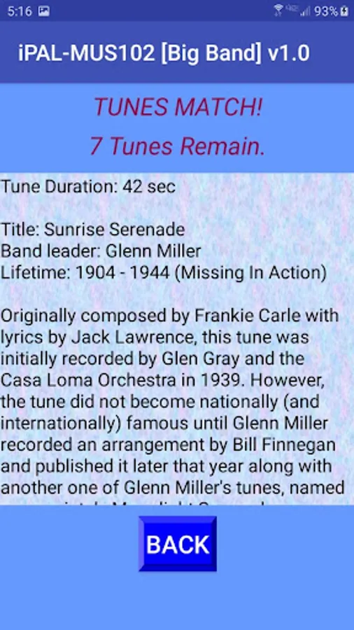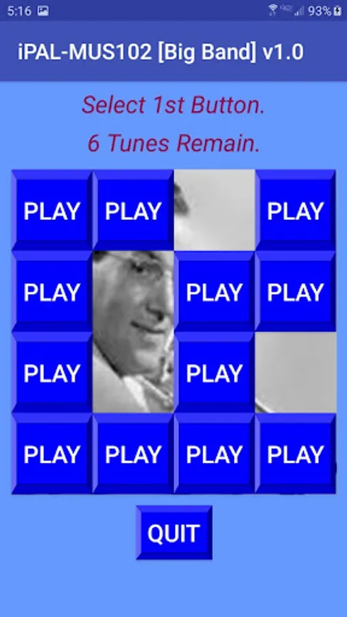 Enjoy memorable Big Band music by the master musicians, while exercising your memory skills. While playing the game, learn historical facts about the great music and the band leaders. This game is similar to the classic Memory game, except here, instead of pictures, you need to match tunes. Select a button, remember the tune, select another button, and see if the tunes match; if they do not match, remember which tunes are under which button and select another button. When all the buttons are matched and removed, YOU WIN!!