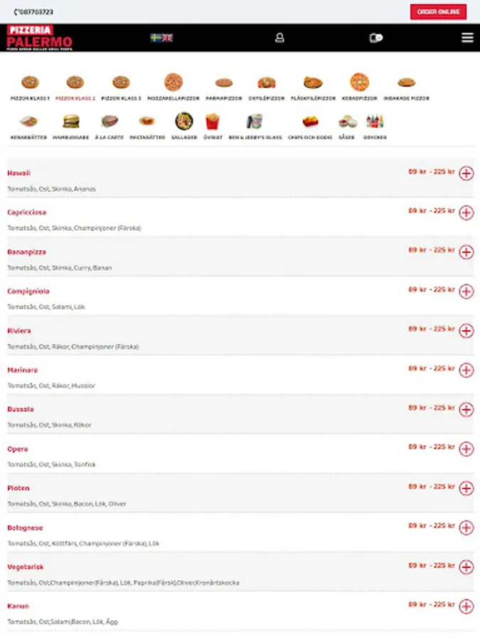 You can order online with different payment options. Take advantage of the rich menu content and attractive promotions. You can order online pizza, burgers and salad in the Tyresö region.