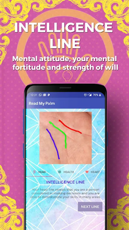 🤓 Read Intelligence line (also called the head line): Reveal your wisdom, belief and thought capacity. Reading this line predicts whether you are intelligent, creative or self-controlled.