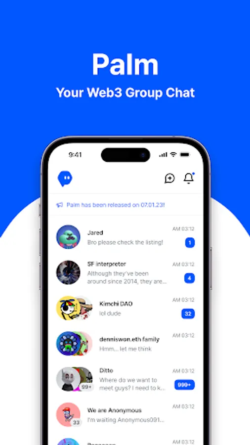 Welcome to Palm, your wallet-to-wallet Web3 group chat.