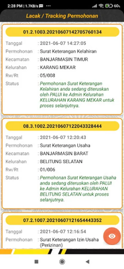 Online public services for people in the City of Banjarmasin in applying for a Certificate / Introduction to the Village in the Banjarmasin City Government area
