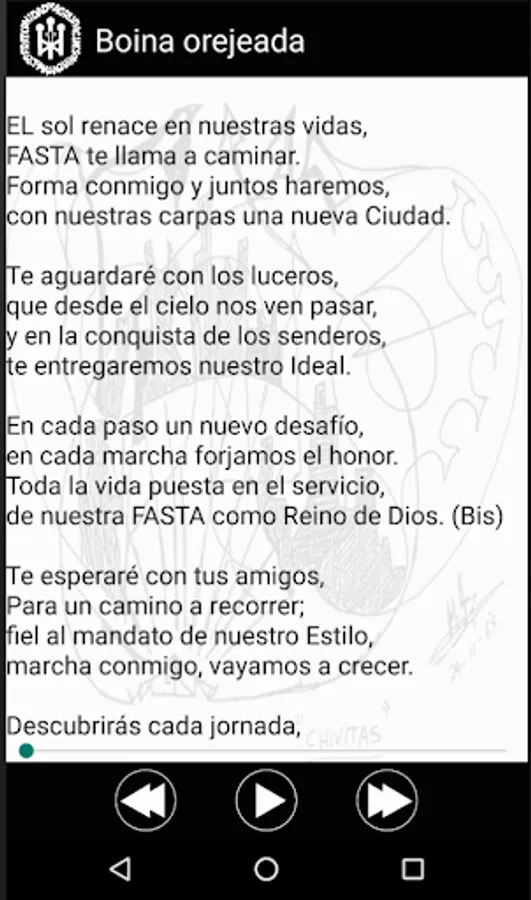 Application containing letters and audios of all marches and songs of the Fraternity of St. Tomás de Aquino Groupings.