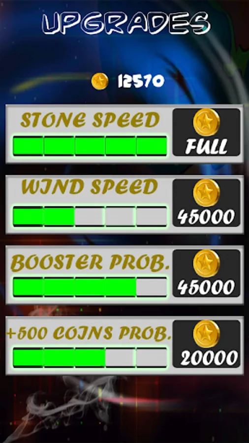 • Increase stone speed, decrease wind speed in upgrades.