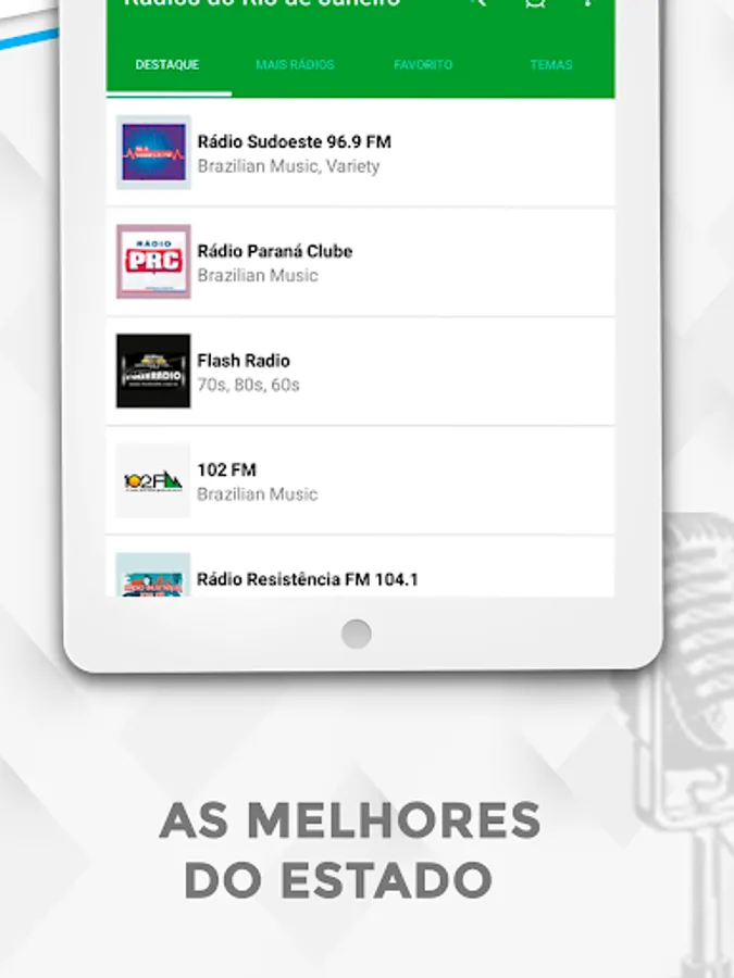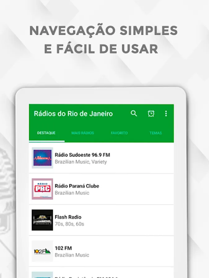 The Rio de Janeiro app (AM / FM and WEB) you can listen to all AM, FM and WEB radio stations of the Marvelous city of Rio de Janeiro from anywhere.