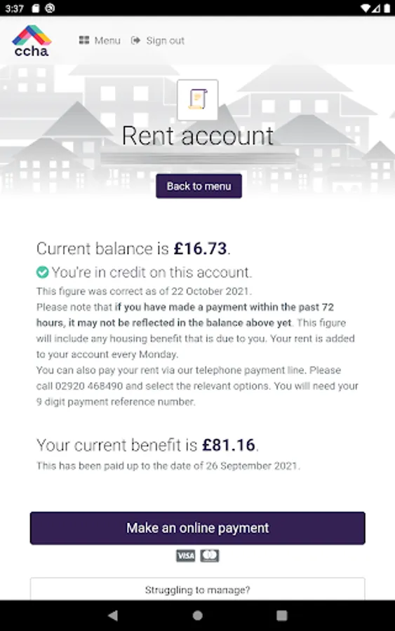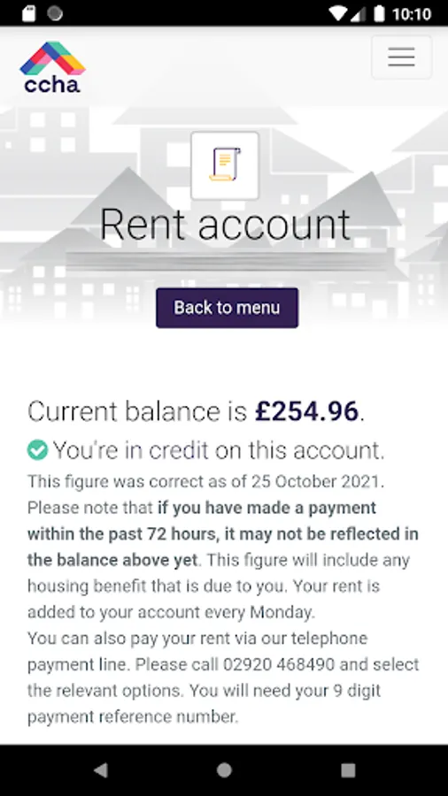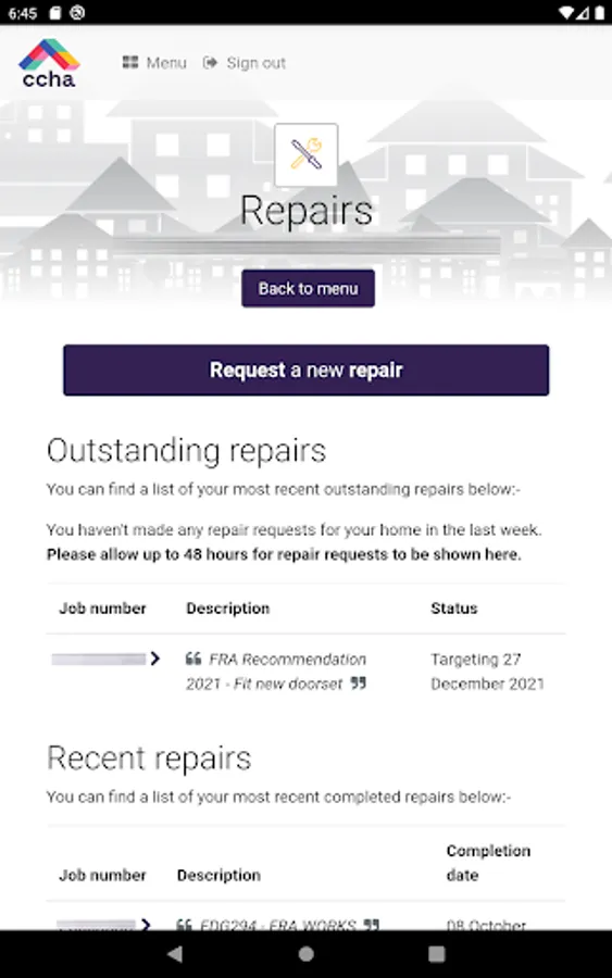 Our self-service portal app lets you manage your housing tenancy with CCHA. You can do things like request a repair or inspection, report anti-social behaviour, check your account statements and mini statement, pay your bill, and much much more.