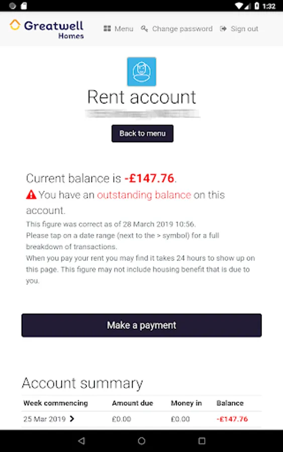 Our self-service portal app lets you manage your housing tenancy with Greatwell Homes. You can do things like request a repair or inspection, report anti-social behaviour, check your account statements and mini statement, pay your bill, and much much more.