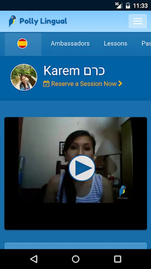 Polly Ambassadors are available for private video sessions to help student with pronunciation, practice conversation, learn local dialects, and more. Videos sessions are sold separately, or by 5- and 10-session bundles, depending on the Ambassador. Some Ambassadors even offer 30-minute trial lessons.