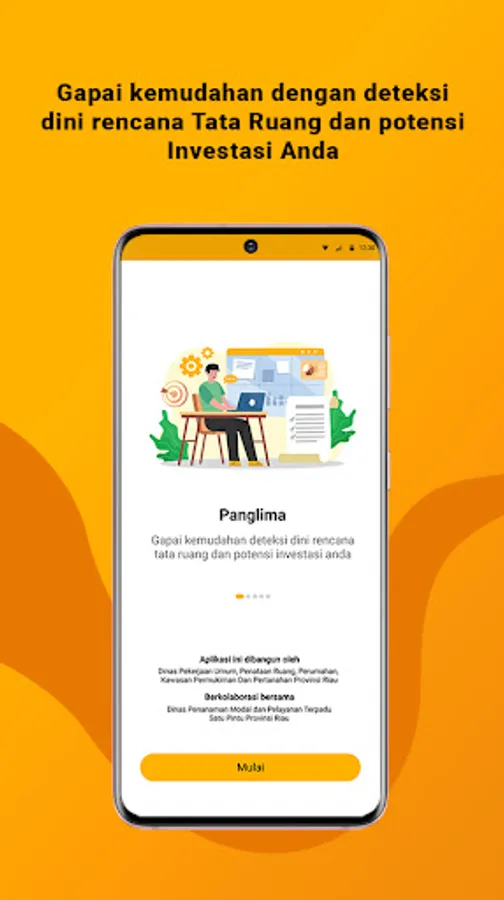 PANGLIMA (Guidelines for Regional Development and Joint Investment) is a digital innovation in the field of spatial planning and information on investment potential in Riau Province in a mobile form built by the Land and Spatial Planning Sector of Public Works, Spatial Planning, Housing, Residential Areas and Land Affairs of Riau Province in collaboration with the Riau Province One Stop Investment and Licensing Service.