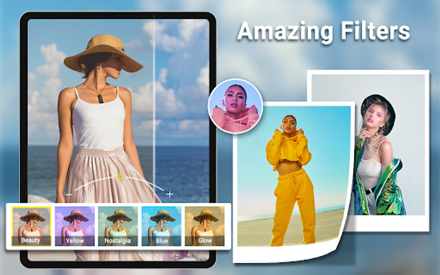 3. Filters: Hand-picked selection of beautiful camera filters, one-touch filters to apply , mosaic pixelate to blur the background, vignette, and HDR effect.
