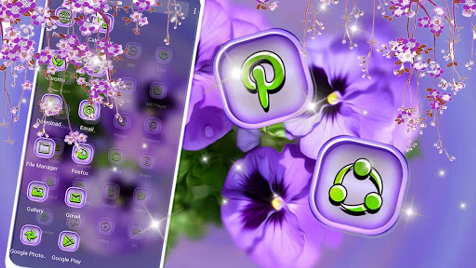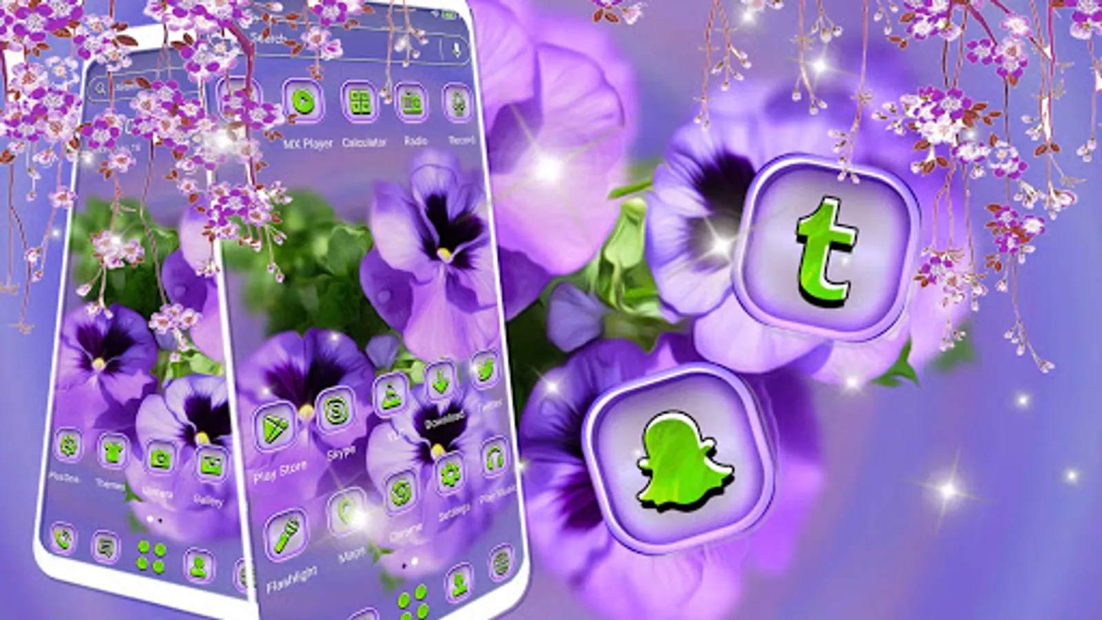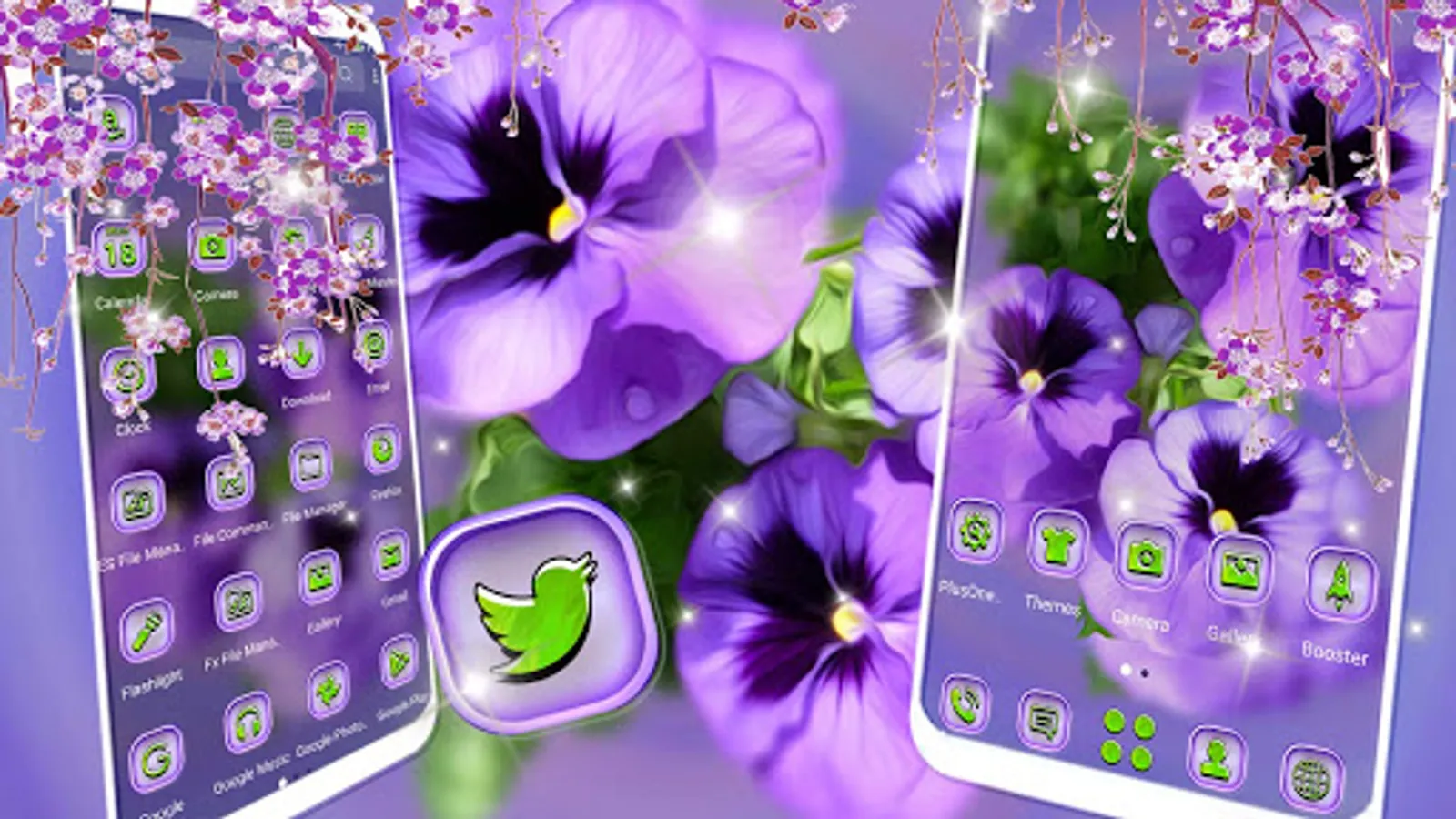 Pansy Flower Purple theme Free, stunning, trendy to Android, Pansy It is designed especially for Pansy Flower Purple Lover. This theme includes seamless HD icon pack, elegant wallpaper and helps transform your phone unique and fashionable.