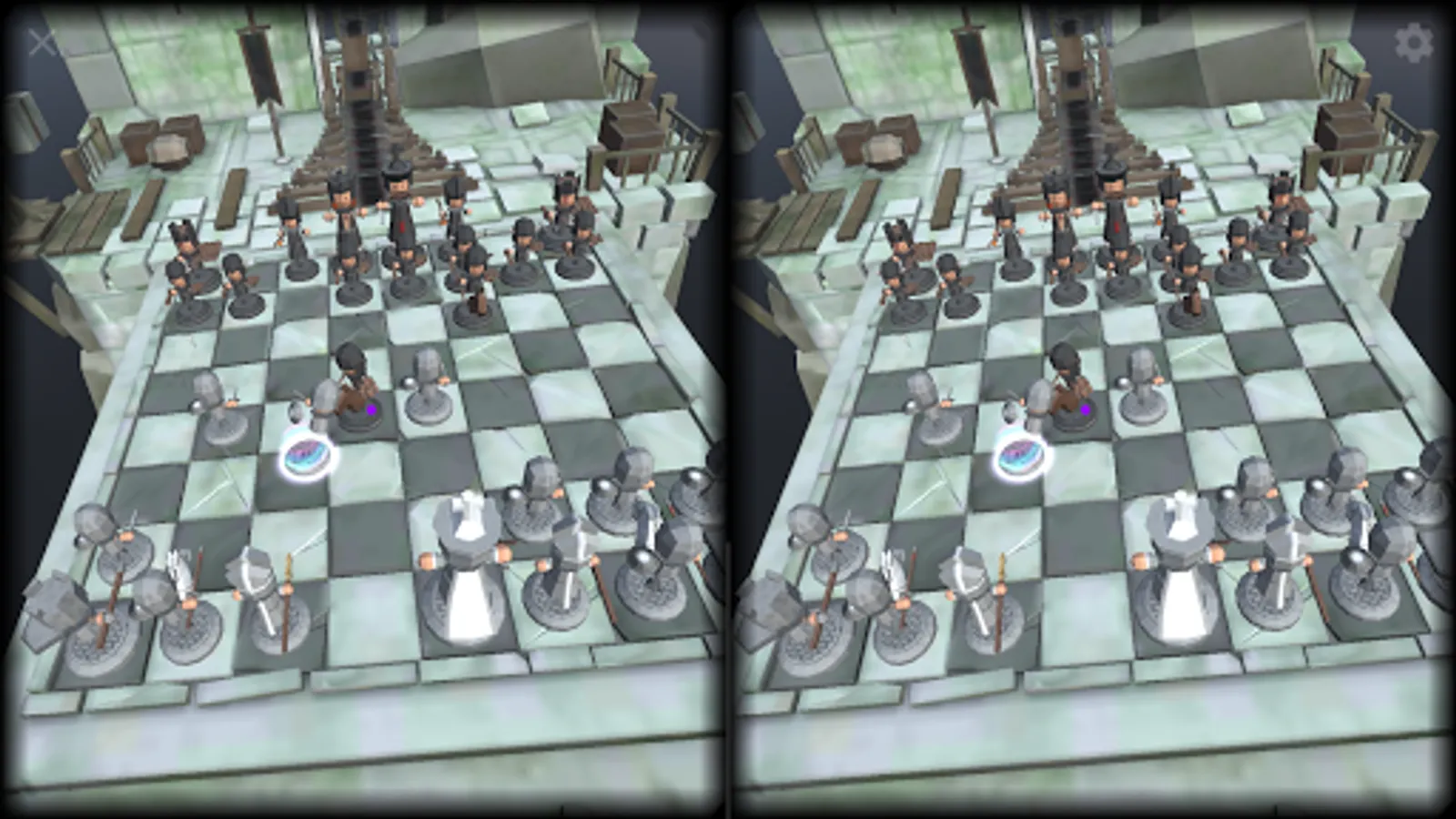 Pawnslaught requires a "Cardboard" type viewer, and supports several forms of input including capacitive triggers (second-generation viewers), magnetic triggers (first-generation viewers, see note below), most standard Bluetooth gamepads, and any normal USB gamepad that can be connected through an OTG adapter (tested with a Logitech F310). Mouse buttons should be usable for triggering as well.