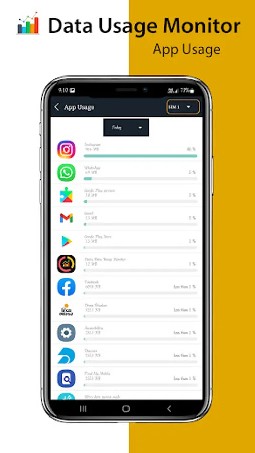 - Monitor your total internet usage for WiFi, mobile data and roaming.