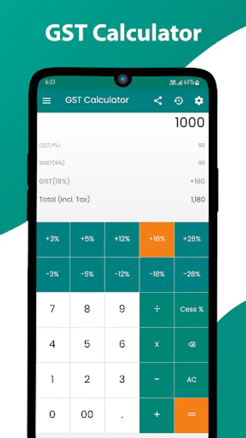 Combined GST Calculator in equipped with a GST Calculation Box which allows copying and shares the GST Calculations and also shows the bifurcation of the taxes as per the current Indian Goods and Service Tax system in form of IGST, CGST, and SGST. You can turn the box on and off from settings or from the handy button provided above the input board in this calculator.