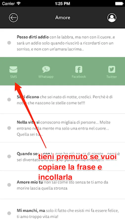 In addition to the sms you find phrases over 160 characters to be sent via SMS, Whatsapp or iMessage.