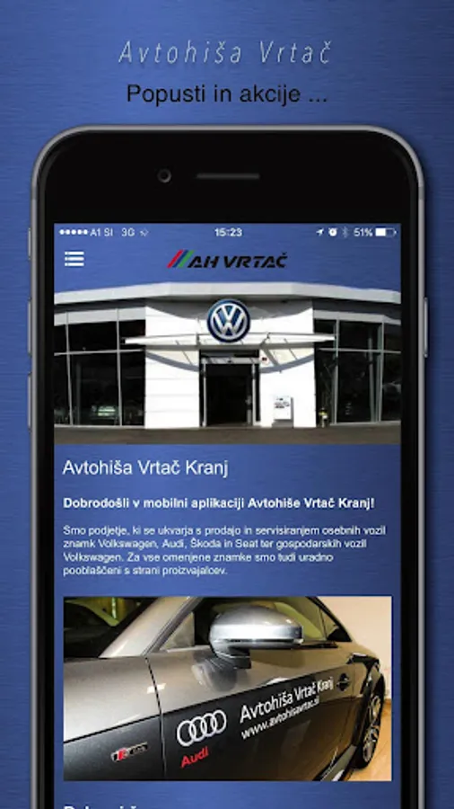Avtohiša Vrtač Kranj officially authorized company for selling and servicing vehicles brands Audi, Skoda, Volkswagen, Volkswagen Commercial Vehicles and SEAT.