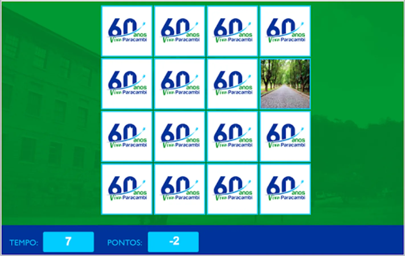 With the Memory Game - 60 years of Paracambi, you have fun and discover a lot about the history of the municipality. To score points, just click on the cards and find the pairs. Who will be able to complete faster?