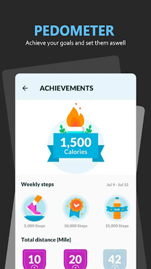 The various accomplishments of the amazing pedometer are good self-motivation to achieve the targeted goal. You can set your dreams and goals freely according to your actual weight and height, and then start a more active life!