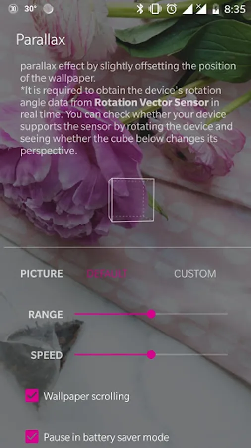 Our parallax 3d Live Wallpaper is a parallax effect wallpaper which will slightly offset the position of the wallpaper when you rotate your device.