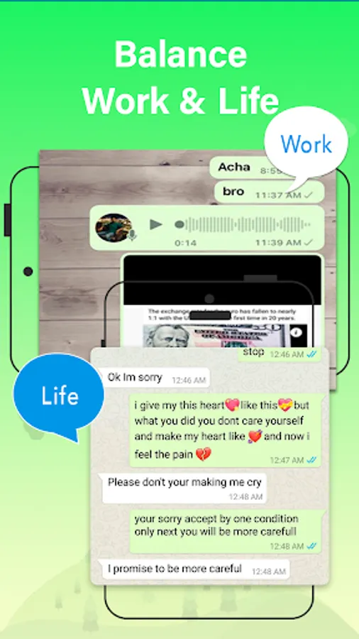 Now maintain a balance of personal and professional life. Dual space app allows you to keep all your personal and professional accounts in one device and use them simultaneously. With this cloning app, you can get notified about all these multi accounts with any interference of data between them.