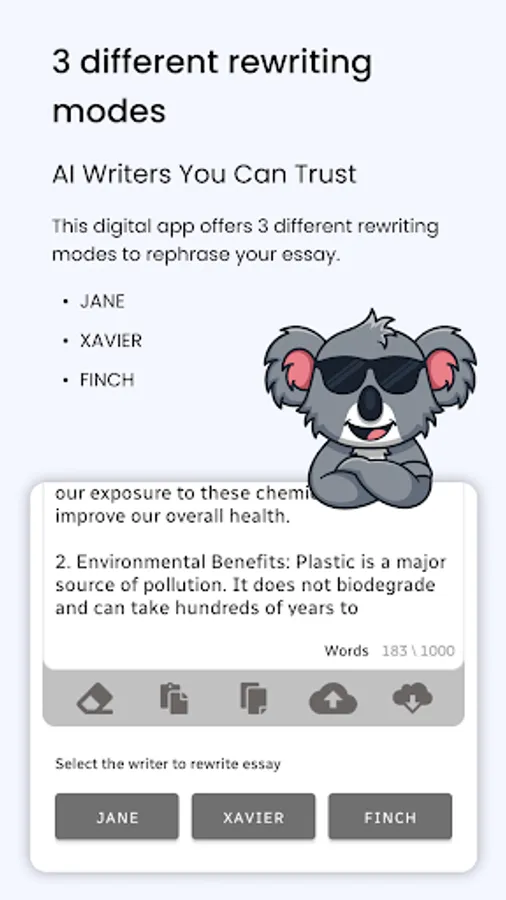 This digital app offers 3 different rewriting modes to rephrase your essay.