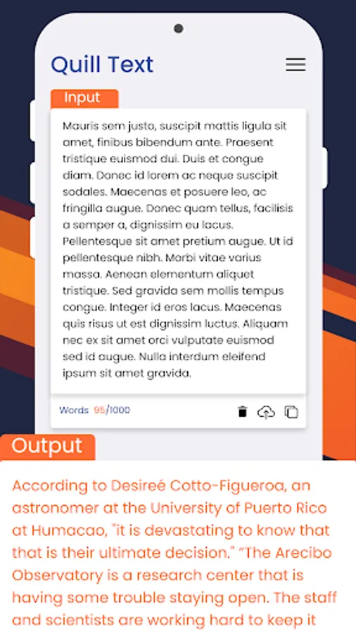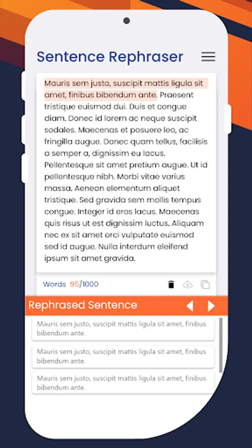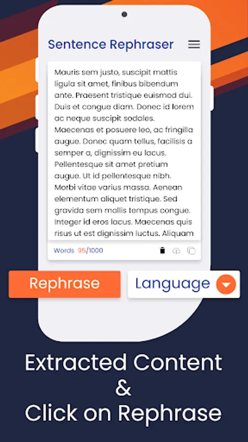 Facing writer's block and stranded with no idea in mind? Rephraser app will instantly give you the dose of inspiration you need and provide a vast array of fresh and new ways to state the same old statements, expressions and sentences. This paraphrasing tool app will help you to think like a creative person by showing different suggestions of one sentence to make you believe how we can write a sentence in different ways by changing their synonyms, structures and tone. The output will be plagiarism free.